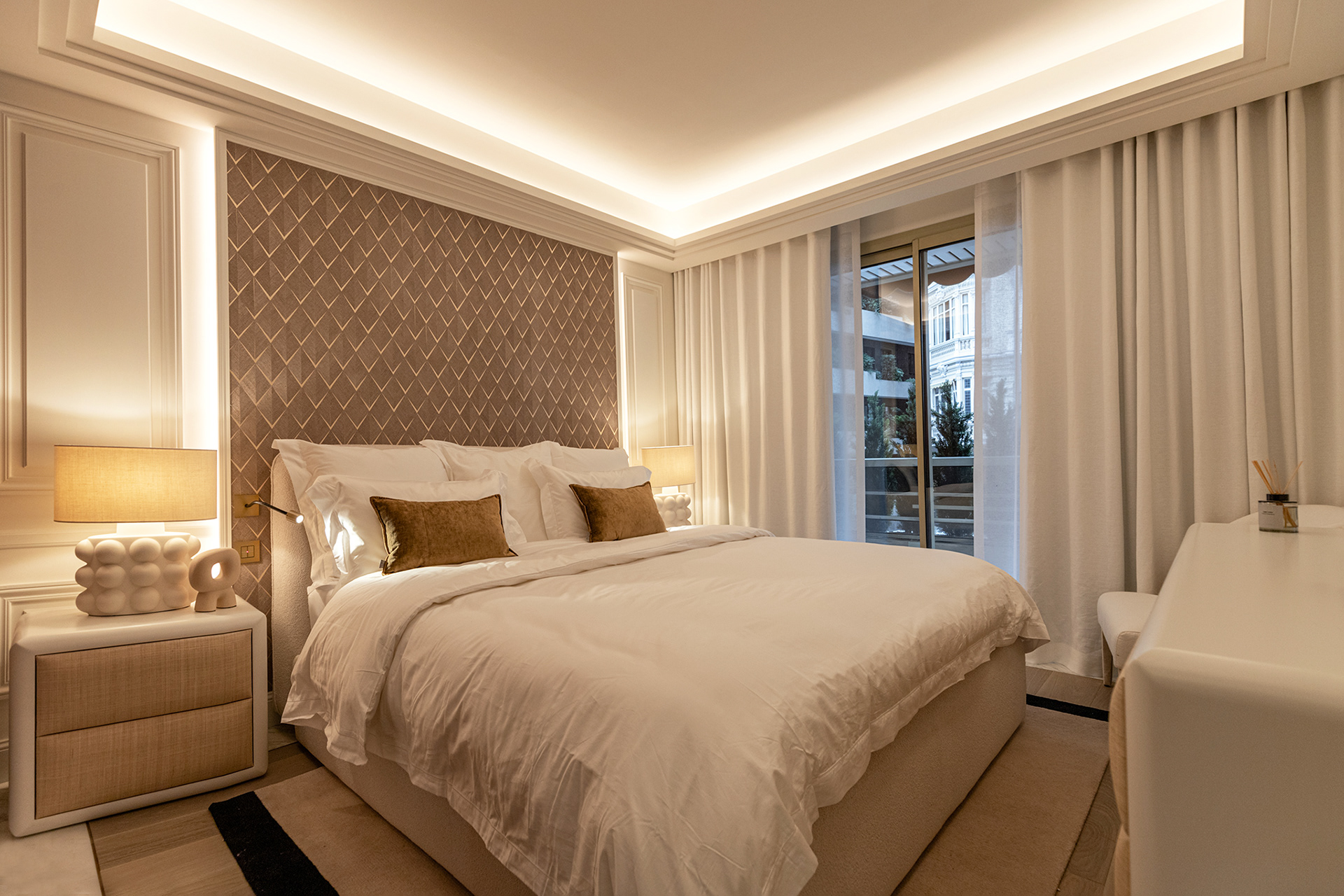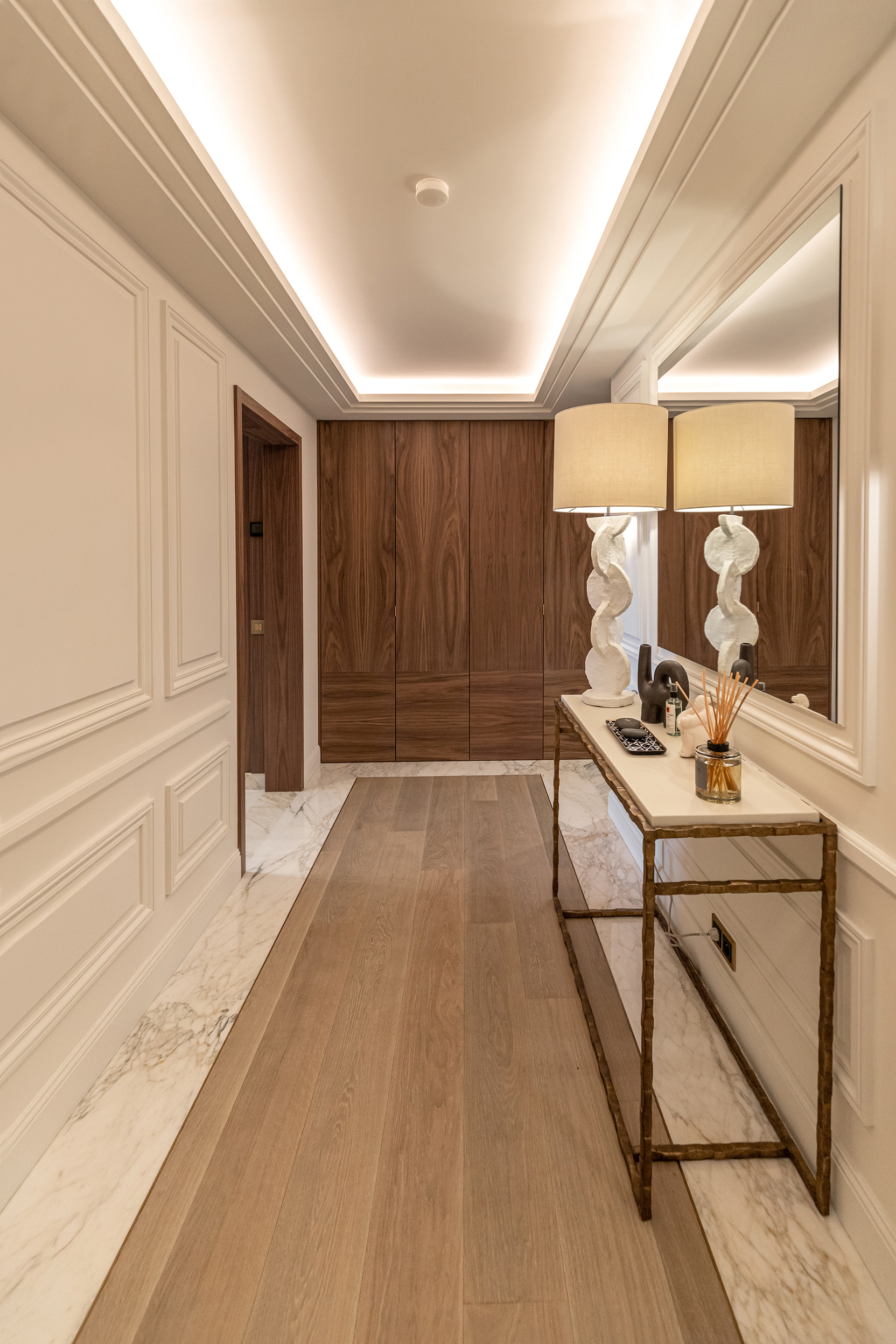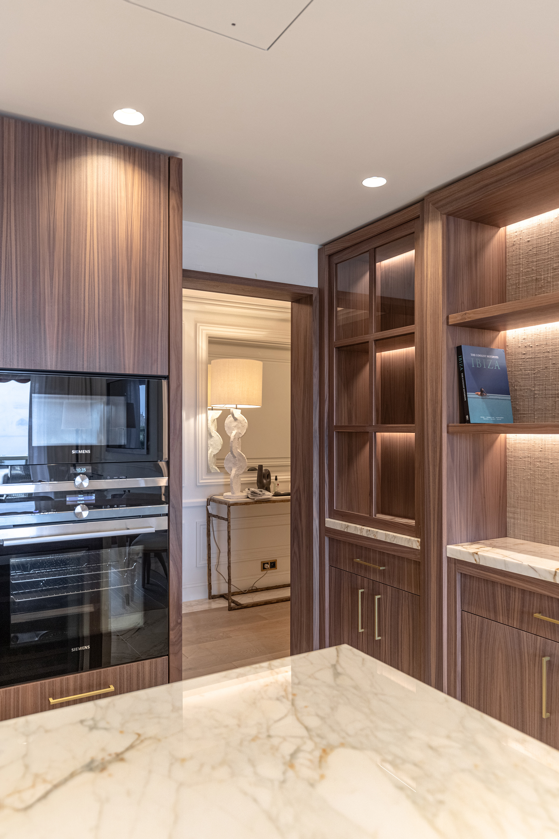 Rénovation complète d’un appartement haut de gamme à Monaco, menée avec une attention particulière aux détails et au choix de matériaux prestigieux tels que le noyer, le marbre, le bronze..