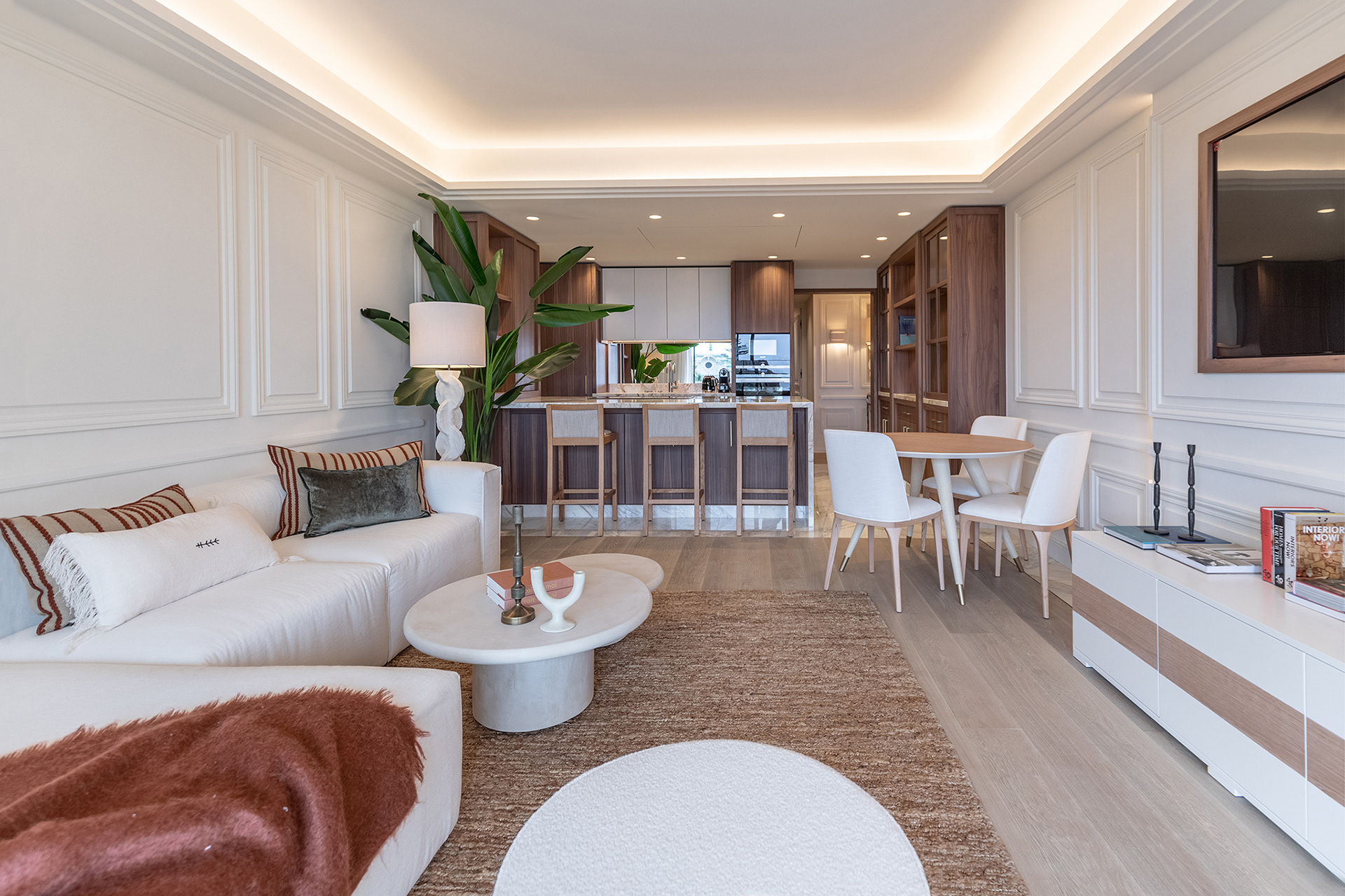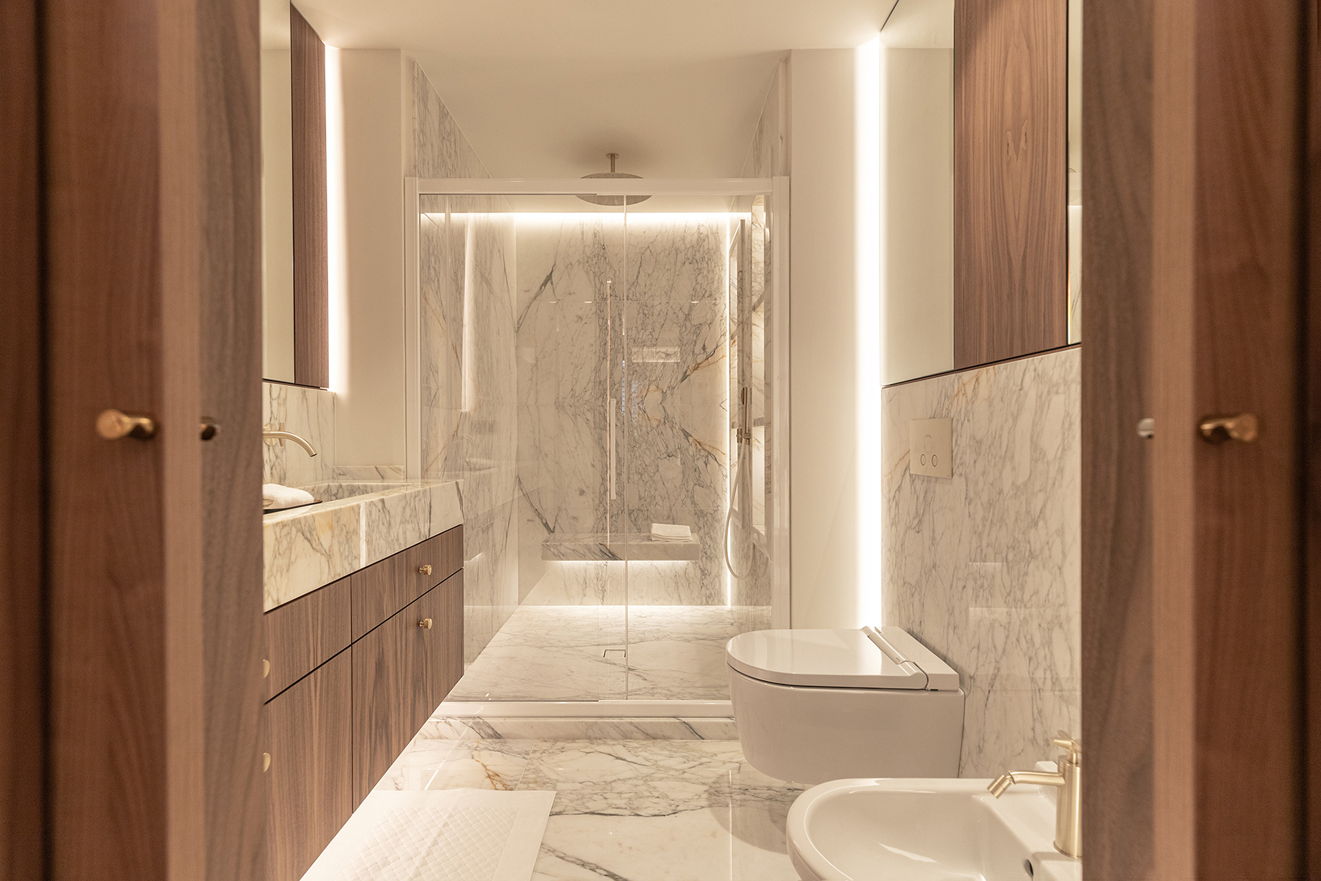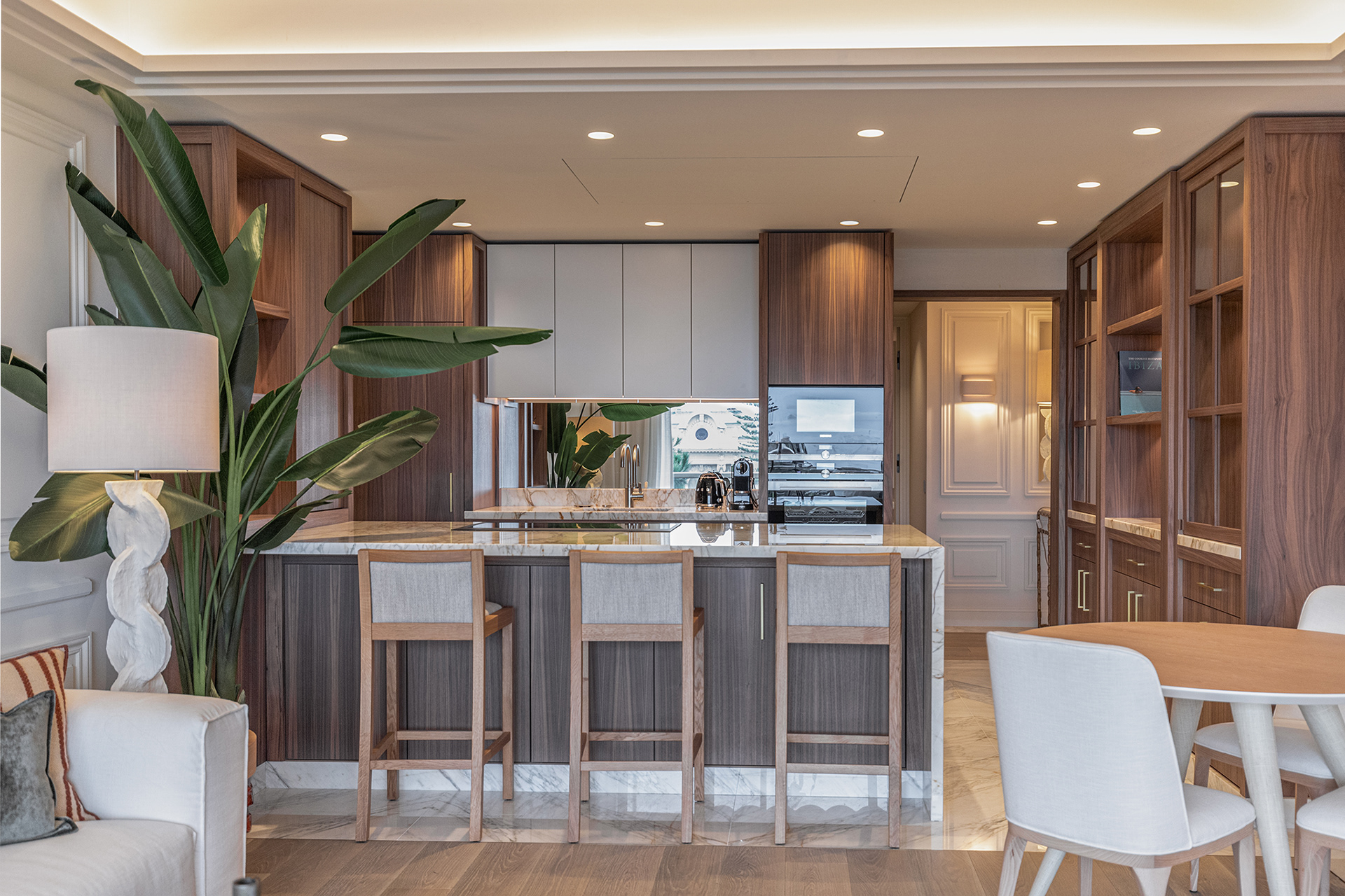 Rénovation complète d’un appartement haut de gamme à Monaco, menée avec une attention particulière aux détails et au choix de matériaux prestigieux tels que le noyer, le marbre, le bronze..