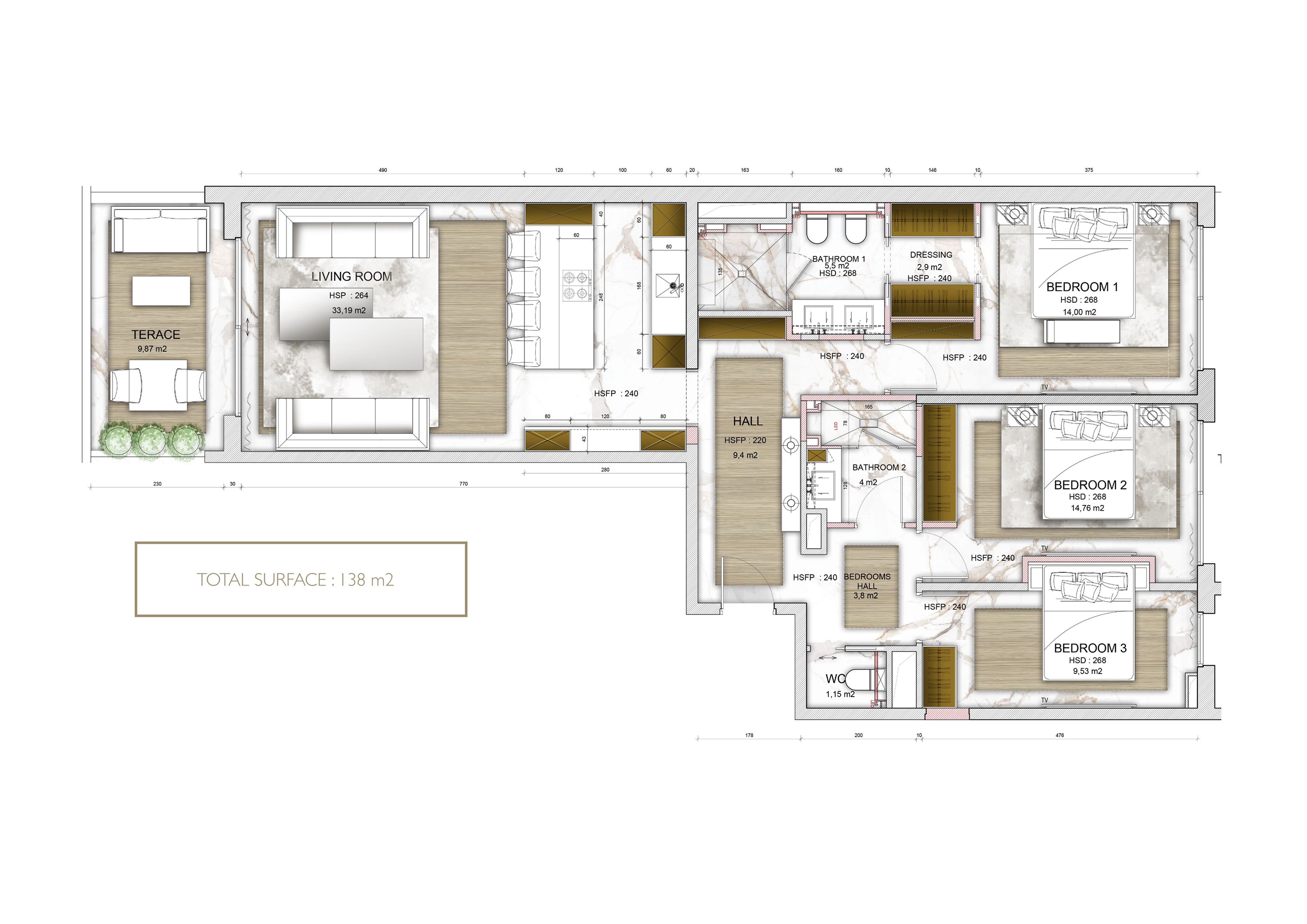 Chaque espace a été pensé pour sublimer les volumes et la lumière, tout en offrant une esthétique raffinée et contemporaine.
