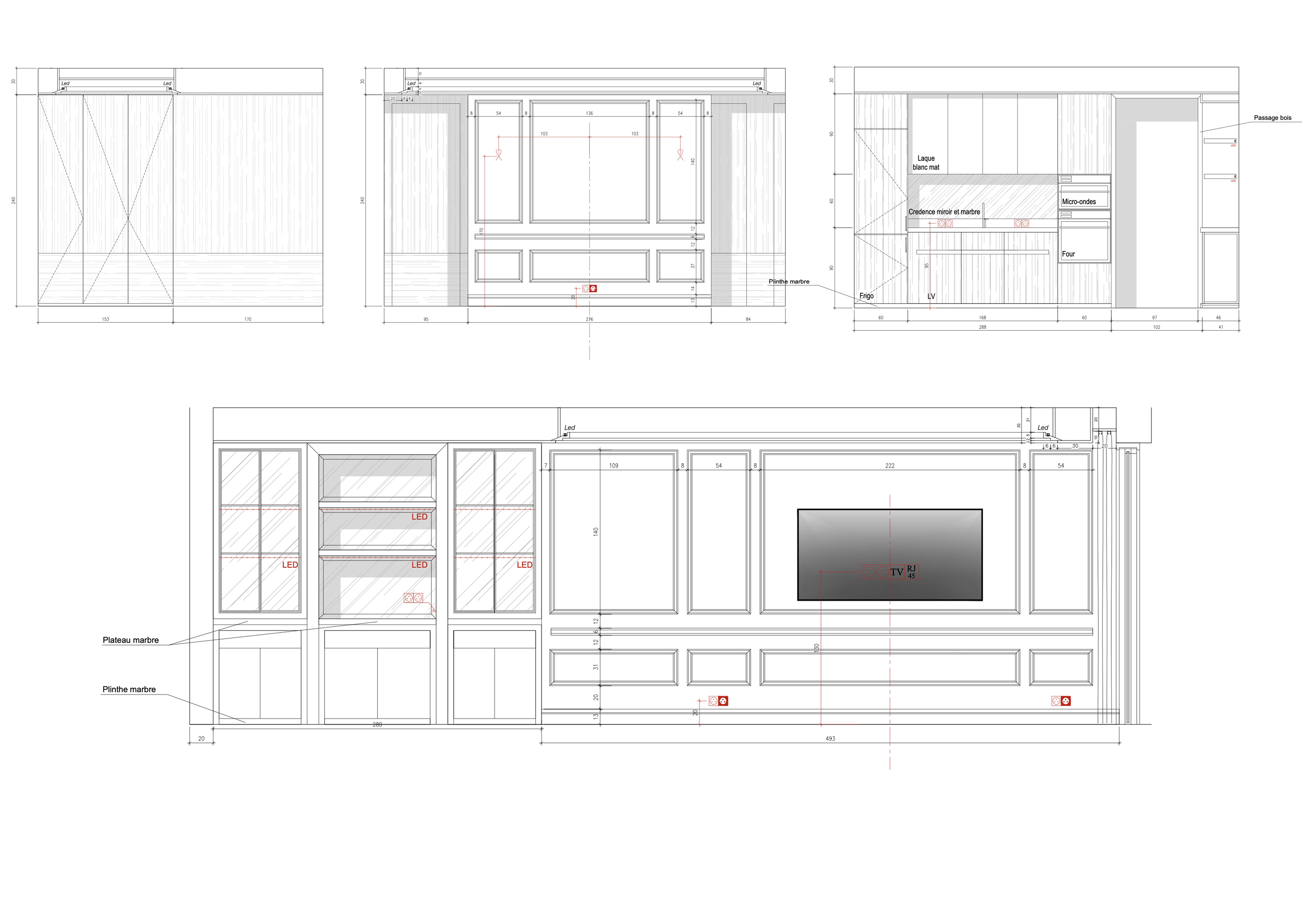 J’ai assuré la conception intégrale du projet : plans, élévations et suivi du chantier jusqu’à la réception finale.