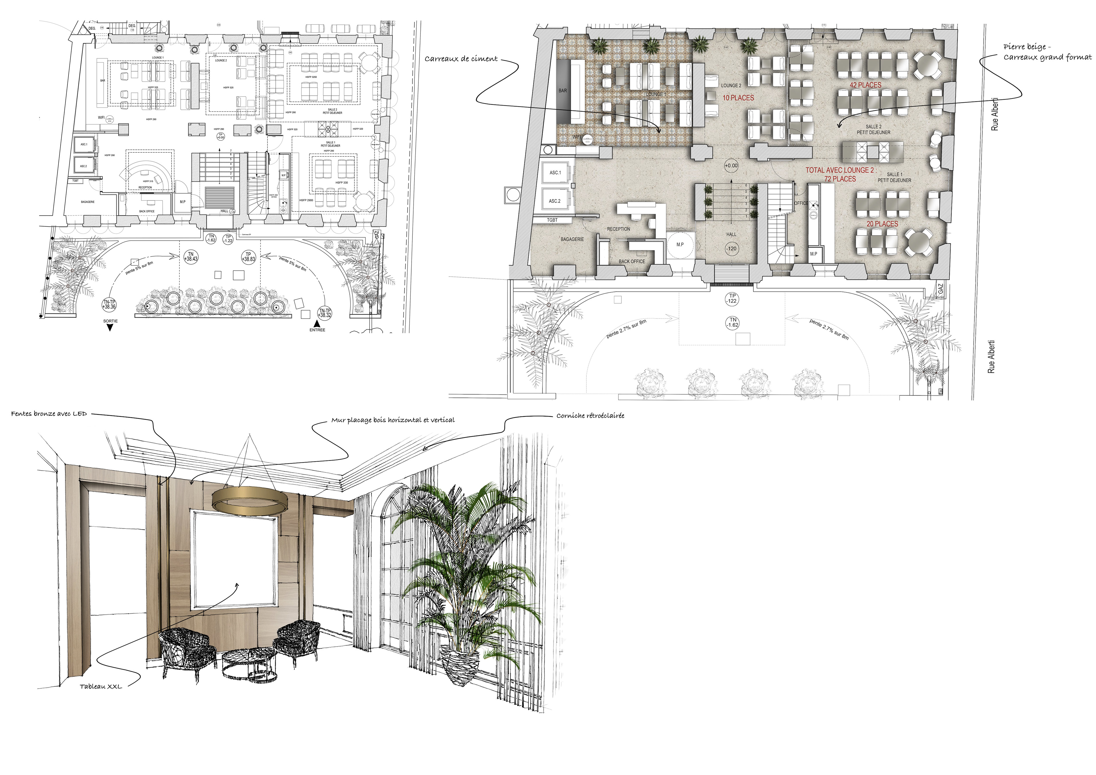 J’ai pris en charge la mission globale : esquisses, plans, modélisations 3D, afin de concevoir une ambiance cohérente et accueillante qui reflète l’esprit de l’établissement.