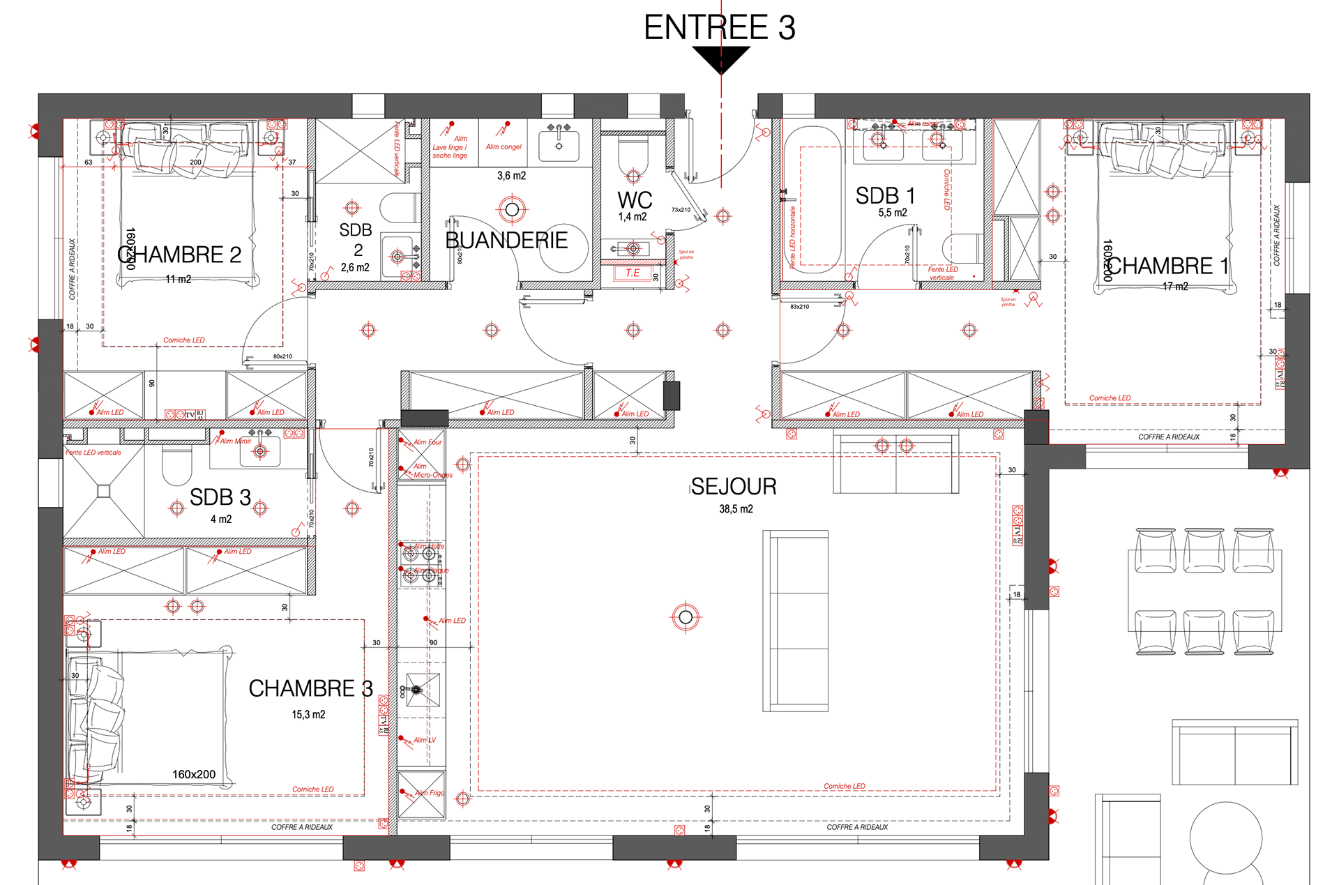 Cet appartement, construit en neuf, a été entièrement géré de la conception à la livraison. Il se compose d’une grande pièce à vivre avec cuisine ouverte, de trois suites avec salles de bain, et d’une grande terrasse.
